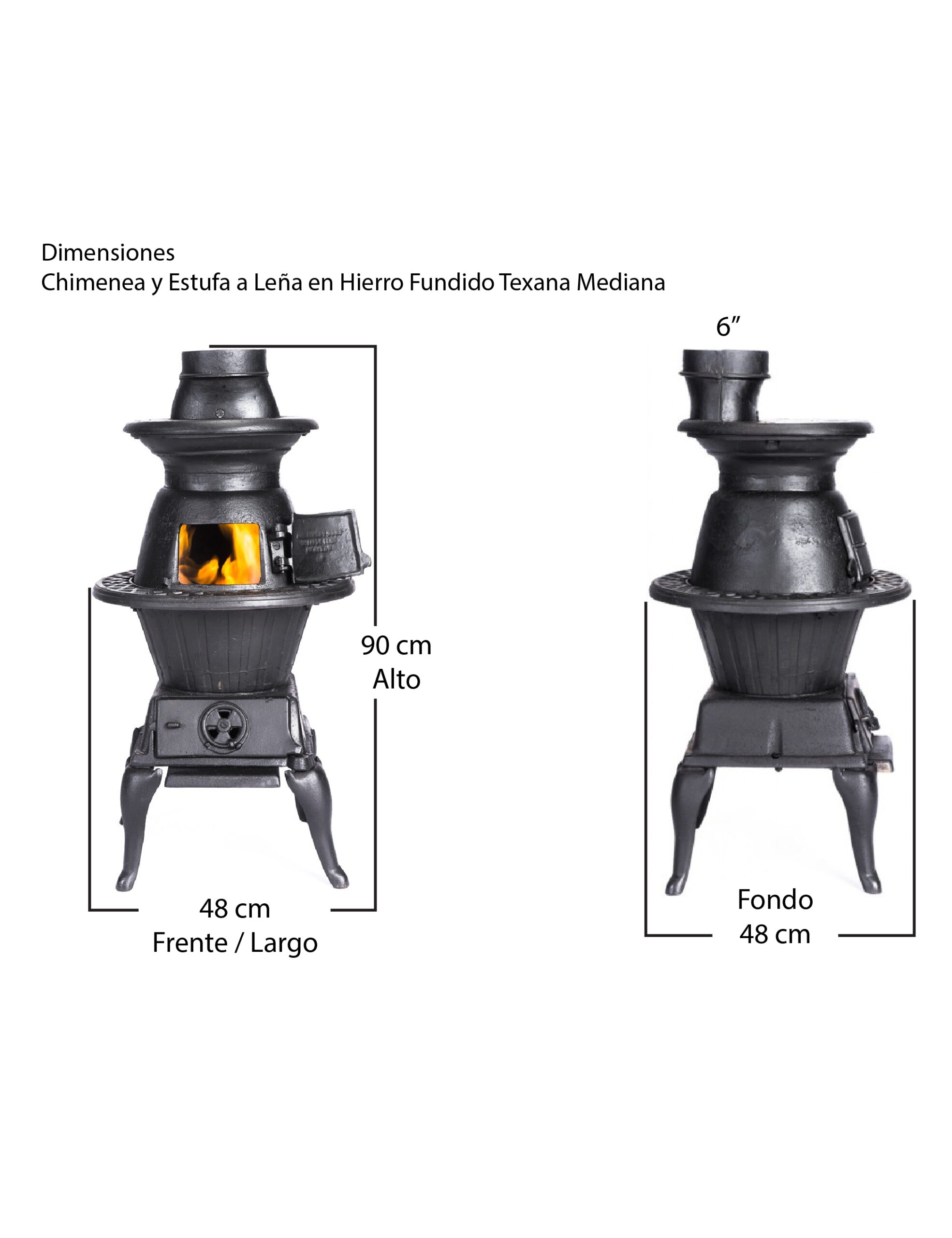 Chimenea y Estufa a Leña en Hierro Fundido Texana Mediana
