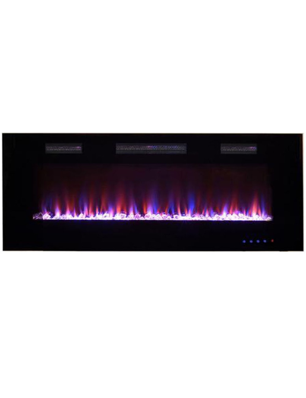 Esta chimenea cuenta con un sistema de calefacción de alta potencia y un diseño sin igual que proporcionan un estilo brillante y distinguido, es perfecta para utilizar de día o de noche gracias a su panel led que permite graduar la intensidad del efecto del fuego, así como los tonos de la llama (naranja, amarillo, azul o combinado). Su efecto de llama lineal, su marco en vidrio frontal rectangular y sus brasas decoradas con cristales transparentes, proporciona un diseño elegante y sofisticado.